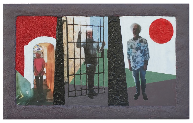 Tecnica mista a rilievo (fotografia, collage, colore acrilico su su supporto ligneo con pasta vinilica ed acrilico) - cm. L: 24 H: 41 I: 3 - 2019